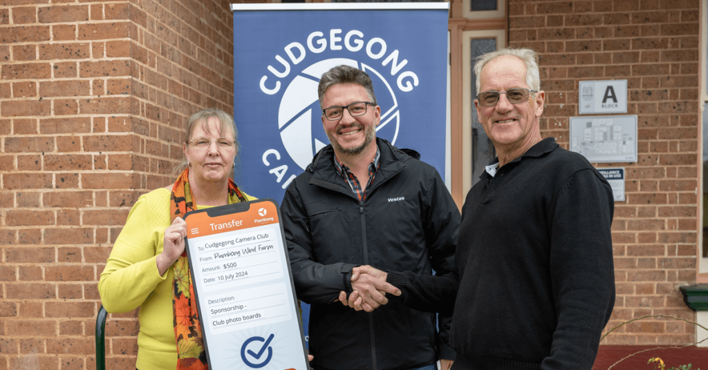Vestas’ Piambong Wind Farm has presented Cudgegong Camera Club with $500 in sponsorship support for its photo display board project.